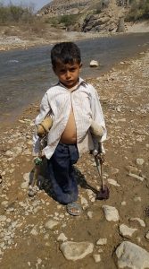 وعلى رغم أنه واحد من أصل آلاف الأطفال الذين تعرّضوا لإصابات وإعاقة دائمة بسبب العدوان على اليمن ، فإن صورته هي مثالاً صارخاً لجرائم تحالف العدوان بحق الطفولة والاطفال في اليمن