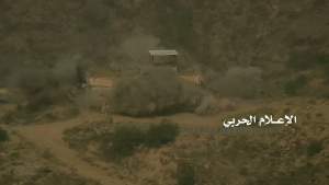 وزع الإعلام الحربي صور من مشاهد قيام ابطال الجيش واللجان الشعبية بتفجير مركز الجمايم العسكري السعودي بجيزان وإحراق آلية تركها الجنود السعوديين خلفه ولاذوا بالفرار