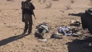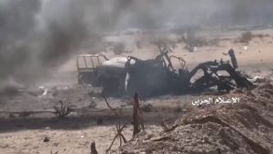 ويظهر في المشاهد حجم الآليات التي دمرها وأعطبها ابطال الجيش واللجان الشعبية بالعبوات الناسفة وبالرشاشات وصور أخرى لقتلى المرتزقة .