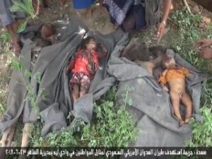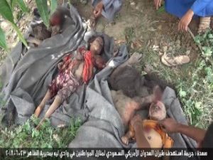 استشهد خمسة أشخاص بينهم امراتين وطفلين في حصيلة غير نهائية لغارات طيران العدوان الامريكي السعودي على منازل المواطنين في وادي ليه بمديرية #الظاهر