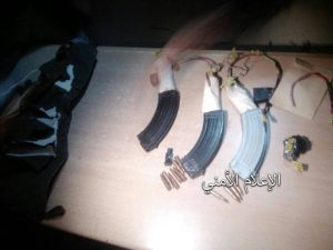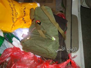 بعد عمليات رصد ومتابعة أمنية مهمة تمكنت الأجهزة الأمنية واللجان في محافظة حجة من ضبط 4 أشخاص على متن سيارة كانوا متجهين إلى العاصمة صنعاء وأثناء تفتيش السيارة تم العثور على حزام ناسف مركب في جعبة وثلاث خزنات سلاح آلي محشوة بمواد متفجرة وموصلة ببطارية 9 فولت وأسلاك وتحتوي كل خزنة على كيس بلاستيكي شفاف وبداخله مسحوق متفجر وكرات معدنية بقطر 3 ملم و5 ملم زنة كل كيس 250 جرام وتم تحريزها جميعا والقضية رهن استكمال الإجراءات.