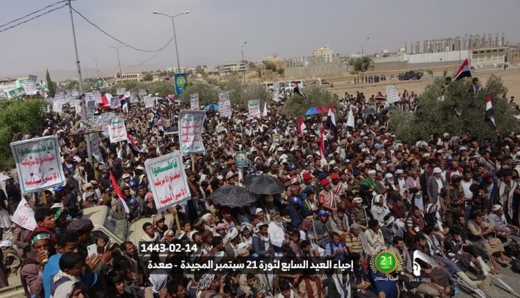 خرجت صباح الثلاثاء مسيرة جماهيرية كبرى في مدينة صعدة بمناسبة ذكرى ثورة الحادي والعشرين من سبتمبر.