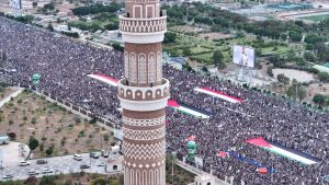 خرجت اليوم بصنعاء حشود غفيرة اكتظت بها ساحة السبعين في مليونية “ثابتون مع غزة..وسنتصدى لأمريكا ومن تورط معها” في ميدان السبعين #صنعاء 06محرم1446هـ الموافق 12يوليو2024م تلبية لدعوة السيد القائد عبدالملك بدرالدين الحوثي مؤكدة موقفها الثابت والمبدأي تجاه فلسطين مفوضة للسيد القائد في اتخاذ القرارات التي يراها مناسبة تجاه العدو الأمريكي وكل من تورط معه في الدفاع عن اليهود المغتصبين الذين يرتكبون أبشع جرائم العصر .
