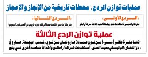 نص بيان عملية توازن الردع الثالثة : اثنتا عشرةَ طائرةً مسيرةً من نوعِ صماد3 صاروخان من نوعِ “قدس” المجنحة. صاروخُ “ذوالفقار” الباليستي بعيدُ المدى. استهدفت شركةَ أرامكو وأهدافاً حساسةً اخرى في ينبع