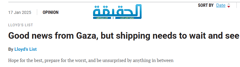 عناوين : كيف غطت صحيفة “لويدز ليست” البريطانية الوضع في البحر الأحمر بعد إعلان وقف إطلاق النار
