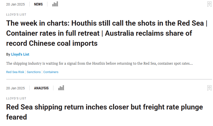 20 يناير 2025 :الحوثيون ما زالوا يسيطرون على البحر الأحمر | أسعار الحاويات تتراجع بشكل كامل
