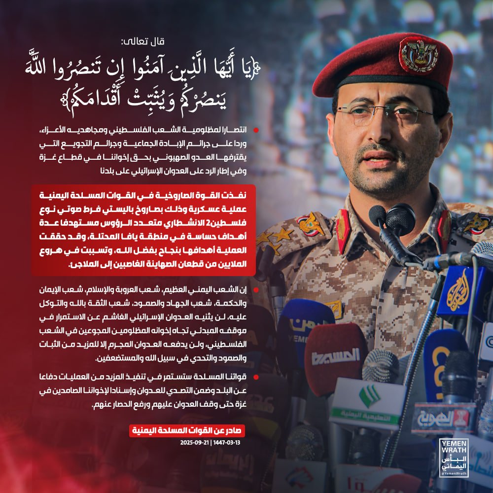 في شهر سبتمبر :تفاصيل العمليات العسكرية اليمنية التي حشرت العدو الصهيوني في دائرة الفشل والذعر