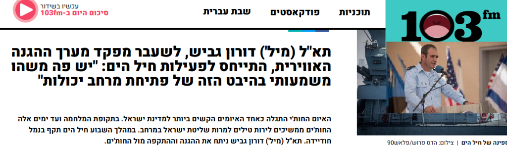 إذاعة “103FM” العبرية عن العميد في الاحتياط دورون غبيش، القائد السابق لمنظومة دفاع العدو: