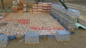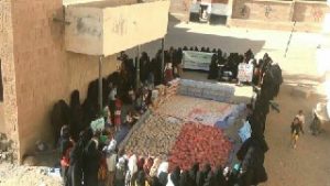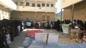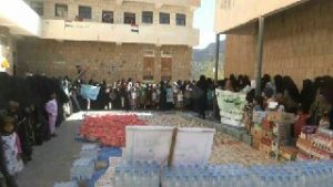 قافلة غذائية للجيش واللجان الشعبية مقدمة من نساء مديرية بني مطر منطقة حضران