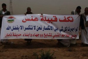 بدورهم اعلن مشائخ ووجهاء وأعيان مديريات عنس وميفعة عنس ومغرب عنس ومدينة ذمار في بيان النفير العام لكل ابناء القبيلة استجابة لنكف قبائل الجوف وأرحب وإب والبيضاء وللتنديد بجرائم العدوان التي تتنافي مع المبادئ والقيم والعادات القبلية الاصيلة