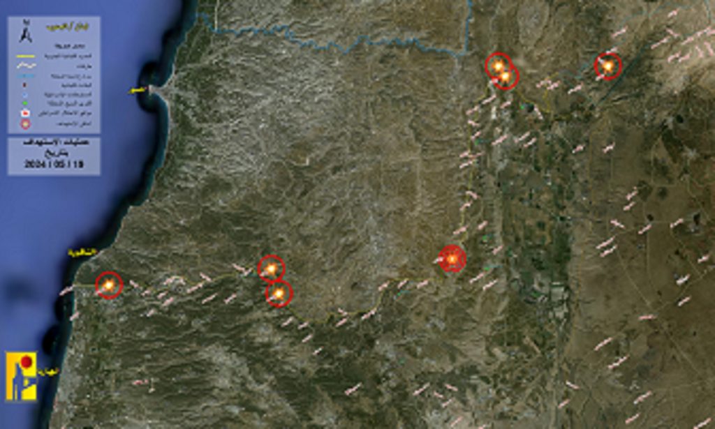 دعمًا للشعب الفلسطيني الصامد في قطاع غزّة وإسنادًا لمقاومته الباسلة والشريفة، نفّذت المقاومة الإسلامية عددًا من العمليات ضد مواقع وانتشار جيش العدو الإسرائيلي عند الحدود اللبنانية الفلسطينية بتاريخ الأحد 19-05-2024، وفقًا للتالي: