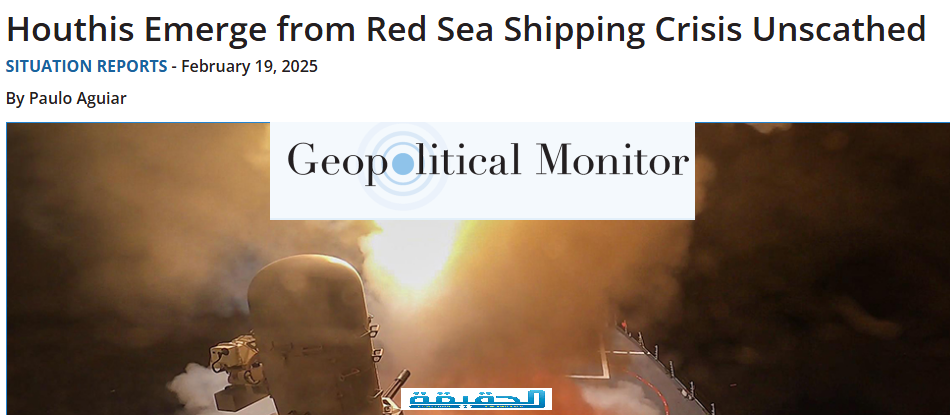 مؤسسة جيوسياسي مونيتور الاستخباراتية الدولية :الحوثيون خرجوا من معركة البحر الأحمر متماسكين وترسانتهم العسكرية توسعت ومكانتهم تعززت والعمليات الانتقامية لواشنطن ضدهم فشلت