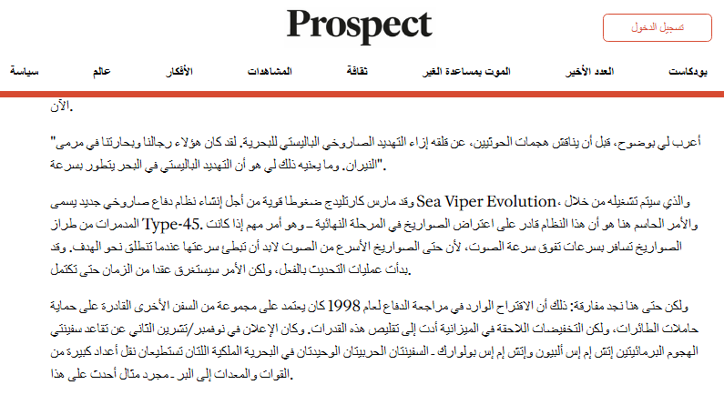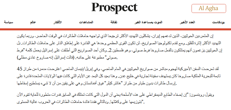 مجلة “بروسبكت- Prospect ” البريطانية: القوات المسلحة اليمنية تشكّل أكبر تهديد تواجهه حاملات الطائرات في الوقت الحاضر