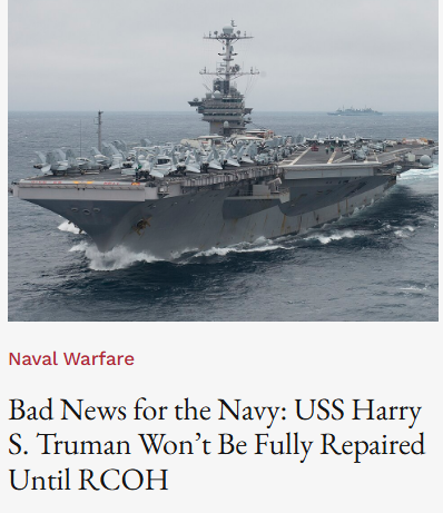– الأخبار السيئة للبحرية الأمريكية تفيد بأن حاملة الطائرات “هاري إس ترومان” لن يتم إصلاحها بالكامل قبل عملية إعادة التزود بالوقود والإصلاح الشامل
