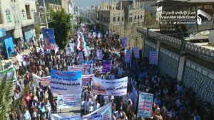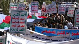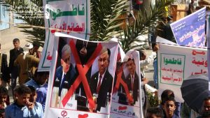 وردد المشاركون الذين حملوا لافتات وأعلام الجمهورية اليمنية ودولة فلسطين شعارات منددة بمحاولات التطبيع مع العدو الصهيوني .