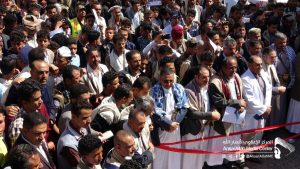 فيما أكدت كلمة العلماء التي ألقاها الشيخ عبد الباسط الحميدي رفض أبناء الشعب اليمني التطبيع مع الكيان الصهيوني المحتل للأراضي الفلسطينية والعربية.