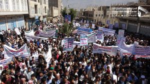 وكانت مسيرة جماهيرية حاشدة تقدمها وكلاء المحافظة ورئيس الكتلة البرلمانية للمحافظة أحمد النزيلي وعدد من أعضاء مجلسي النواب والشورى ومدراء وأعضاء السلطة القضائية ومدراء المكاتب التنفيذية والمجالس المحلية والقيادات الأمنية والعسكرية ودكاترة الجامعة وقادة الأحزاب والتنظيمات السياسية والمشائخ والوجهاء، انطلقت من شارع الثلاثين بمدينة إب إلى أمام مبنى المجمع الحكومي.