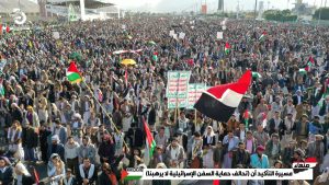 وأكدت أن الخروج غير مسبوق بالعاصمة صنعاء والمحافظات، رسالة واضحة لأمريكا ودول الغرب، بوقوف الشعب اليمني خلف قيادته الحكيمة وتفويضه المطلق لكل القرارات في نصرة الشعب الفلسطيني ومقاومته الباسلة.