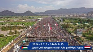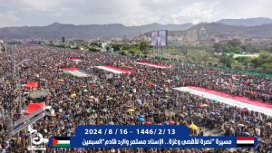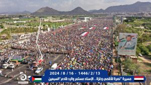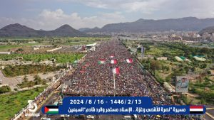 وجددت الجماهير المليونية، العهد بمواصلة النفير والخروج الواسع نصرة ومساندة الشعب الفلسطيني ومقاومته الباسلة في غزة والأراضي المحتلة، والتحشيد المستمر لمواجهة العدوان الأمريكي والصهيوني والبريطاني.