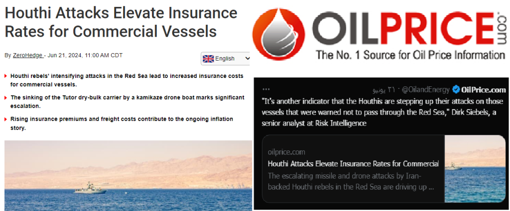 مواقع وصحف ومجلات وشركات متخصصة في اللوجستيات البحرية وأخبار الشحن وسلاسل التوريد والشأن التجاري والأسواق وقطاعات الطاقة وإدارة المخاطر :“الحوثيون” – نجحوا في تعطيل الملاحة الإسرائيلية – أنهكوا الكيان اقتصادياً وعسكرياً – يتبنون تكتيكات جديدة وخطيرة في البحر الأحمر وهجماتهم تتزايد من حيث العدد والمدى والتعقيد