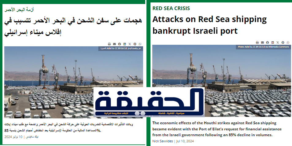 كشف موقع “سيتريد ماريتايم نيوز” البريطاني المختص بشؤون الملاحة والتجارة البحرية، أن هجمات الحوثيين على السفن المرتبطة بإسرائيل أثرت بشكل كبير واضح على حركة التجارة الإسرائيلية، وأدت إلى إفلاس ميناء إيلات الإسرائيلي وتوقف نشاطه لثمانية أشهر حتى الآن.