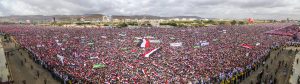 شهد ميدان السبعين بالعاصمة صنعاء، صباح اليوم الأحد، مهرجانا جماهيريا مليونياً إحياء للذكرى الثانية من الصمود التاريخي في وجه العدوان، بحضور رئيس وأعضاء المجلس السياسي ورؤساء مجلس النواب وحكومة الإنقاذ والوزراء ورئيس اللجنة الثورية العليا، وأعضاء مجلسي النواب والشورى وكبار مسئولي الدولة من مدنيين وعسكريين وشخصيات اجتماعية.