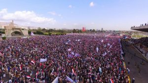 ميدان السبعين في العاصمة صنعاء يشهد سيول بشرية في الذكرى الثانية للصمود في وجه العدوان