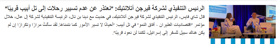 وخلال مؤتمر “اقتصاديات الطيران – آفاق النمو” في تل أبيب تذكر فايس قائلاً : “كنت على اتصال هاتفي مع الرئيس التنفيذي لشركة الخطوط الجوية البريطانية لمناقشة هذه المسألة. الوضع معقد للغاية، وسأحاول تجنب السياسة وأقول إنه إذا استمرت الصواريخ في السقوط على تل أبيب، فسيكون من الصعب جدًا عليّ إقناع الطواقم بالهبوط في إسرائيل. هذا ليس من شأنهم، ولن نعرضهم للخطر. أحيانًا لا تسير الأمور كما نرغب”.