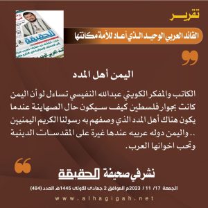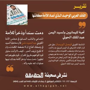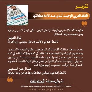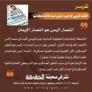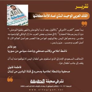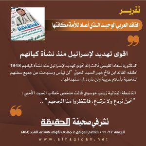 نشرت صحيفة الحقيقة في عددها 484 تقرير بعنوان القائد العربي الوحيد الذي أعاد للأمة مكانتها.