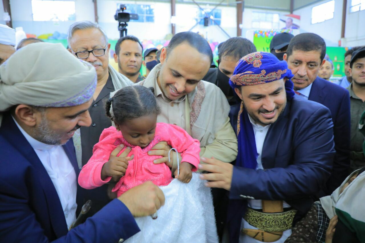 وفي التدشين عبر الرئيس المشاط عن سعادته بما احتواه معرض كسوة العيد للأطفال الفقراء والمساكين والذي يبعث على الفخر والاعتزاز ومحط فرح وسرور ونحن نشاهد أبناء الفقراء والمساكين في هذا المعرض وهم يأخذون الملابس كما يأخذها أبناء جميع الطبقات اليمنية من غير الفقراء والمساكين.