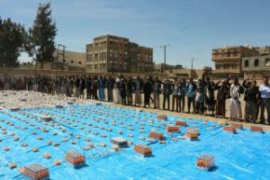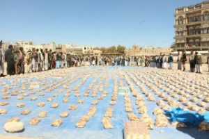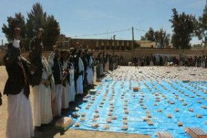 وخلال االوقفة قدم ابناء مديرية ذمار قافلة غذائية أسموها “نحو جبهاتنا وفاءاً لشهدائنا” احتوت على مواد غذائية دعما ومساندة للجيش واللجان الشعبية الذين يدافعون عن الشعب والوطن.