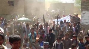 وقفة قبلية لأبناء منطقة ذويـب بصعدة استجابة لداعي النكف واعلاناً للنفير العام.