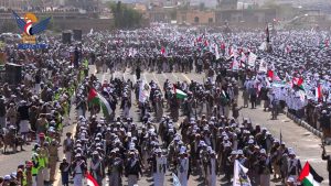 واعتبر وقوف الشعب اليمني إلى جانب فلسطين، موقفاً دينياً وإنسانياً وأخلاقياً ينسجم مع العروبة والقيم والمبادئ والهوية الإيمانية .. وأضاف “نحن غير أبهين بما تحذرونا منه”.