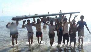 كما أظهرت المشاهد لحظة استخراج المواطنين لحطام الطائرة من مياه البحر وسط هتافات وفرحة كبيرة بهذا الإنجاز العسكري الذي يأتي في سياق التطور النوعي للدفاعات الجوية اليمنية.